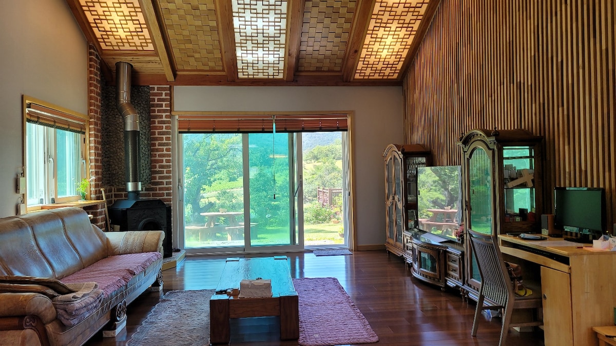 Det er en fredfyldt privat villa beliggende på den smukke Chungju søbred. Føl den rene luft fra Jubongsan og den helbredende effekt af græsplænen foran huset. Hvis du har campingudstyr, som du endnu ikke har brugt, kan du sætte det op i græsplænen og nyde stemningen. Især en morgentur langs stien, der fører til søen, kan give dig en uforglemmelig stemning. Du kan nyde en grill, der er lavet med brænde i en grill, og grøntsager, der er plukket direkte fra haven foran huset. Din trætte krop og sind vil blive helbredt. [Forespørgsler] KakaoTalk kanal-ID: Hus med udsigt over søen Instagram-konto: Lakeviewhouse i Chungju