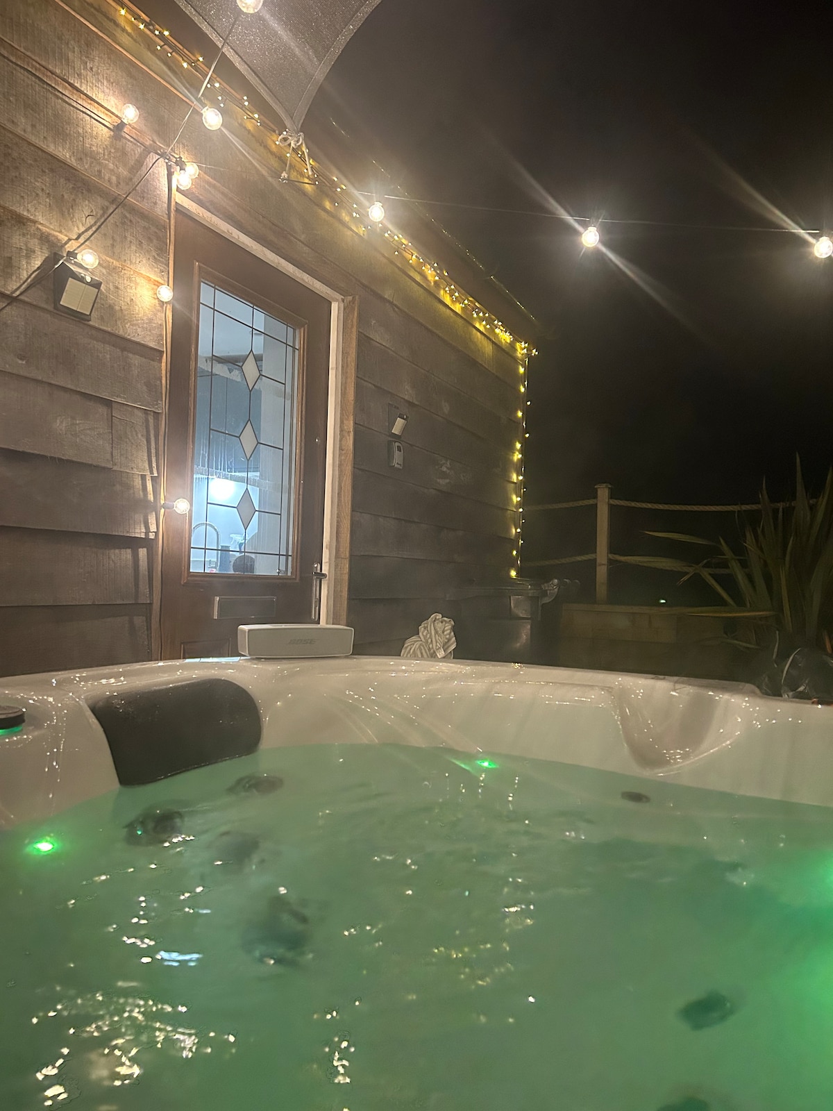 Deer View Cabin er den perfekte afsides ferie, hvor du kan slappe af i boblebadet eller sidde og lytte til regnen på bliktaget i en gyngestol på vores smukke veranda. Indenfor kan du slappe af i komfortable stole ved siden af en hyggelig brændeovn, mens du kigger ud over skov og dyreliv. If you like walking we have beautiful off road walks to the quiet beach of Grimston (25 min walk) or around St Michael's woods, bring passende fodtøj. Deer View blev bygget og designet af min mand Dominic ❤️