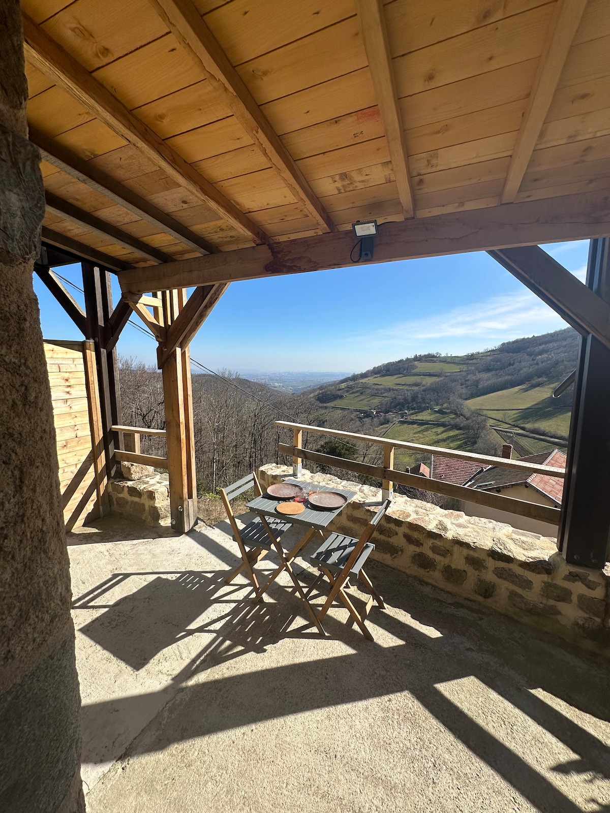 I hjertet af Lyonnais Mounts, et calmea hus på 50 m2, 35 km fra Lyon. Direkte i begyndelsen af vandrestierne, ved krydset af GR 7 og 89. Tæt på en middelalderlig fritidspark (18mn) og en dyrepark med ulve og raptorer (15mn). Kom og smag på landskabets charme og oplev vores barndoms landsby.