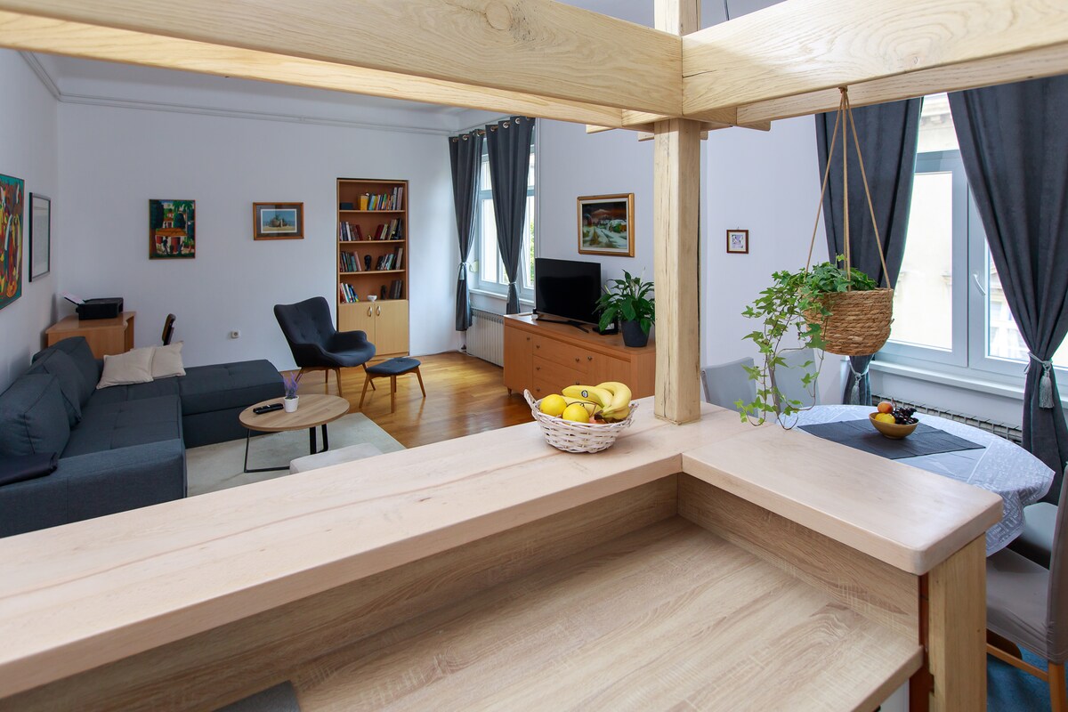 Tidligere paladset tilhørende Šuflaj-familien, et af hjemmene til den berømte Grič-heks, et sted, hvor komponister skabte og musikere spillede, dette er et hjem for rejsende, verdensvandrere, forfattere, kunstnere, digtere og malere. Mere et museum end en lejlighed. Beliggende i hjertet af den gamle øvre by Zagreb, turistattraktioner, Strossmayer gangbroen, Grič Park og St. Markos kirke, dette eksklusive hyggelige hjem på 75 m2 med et galleri ovenover og en pejs er det perfekte sted til din Zagreb-rejse.