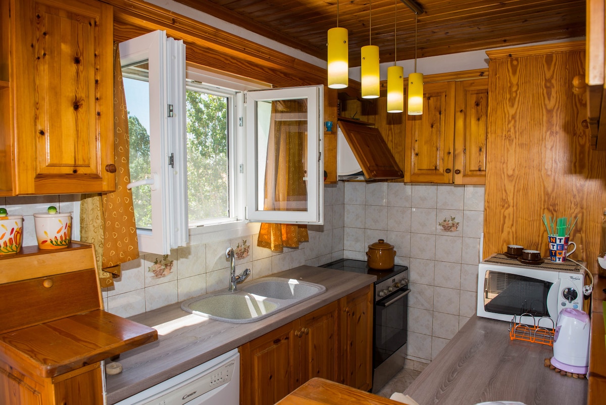 "Erietta" står majestætisk på toppen af en bakke og tilbyder en fantastisk udsigt over Det Ioniske Hav. Lejligheden på 'Erietta' er rummelig, komfortabel og giver gæsterne følelsen af, at de er hjemme. Havet, haven, swimmingpoolen samt oliventræerne kan ses fra din veranda. Der er også en bar-restaurant på stedet, hvor du kan nyde mange græske og lokale retter. På dage, hvor temperaturen ikke er høj nok til en svømmetur, kan vores pooltemperatur justeres op til 28°