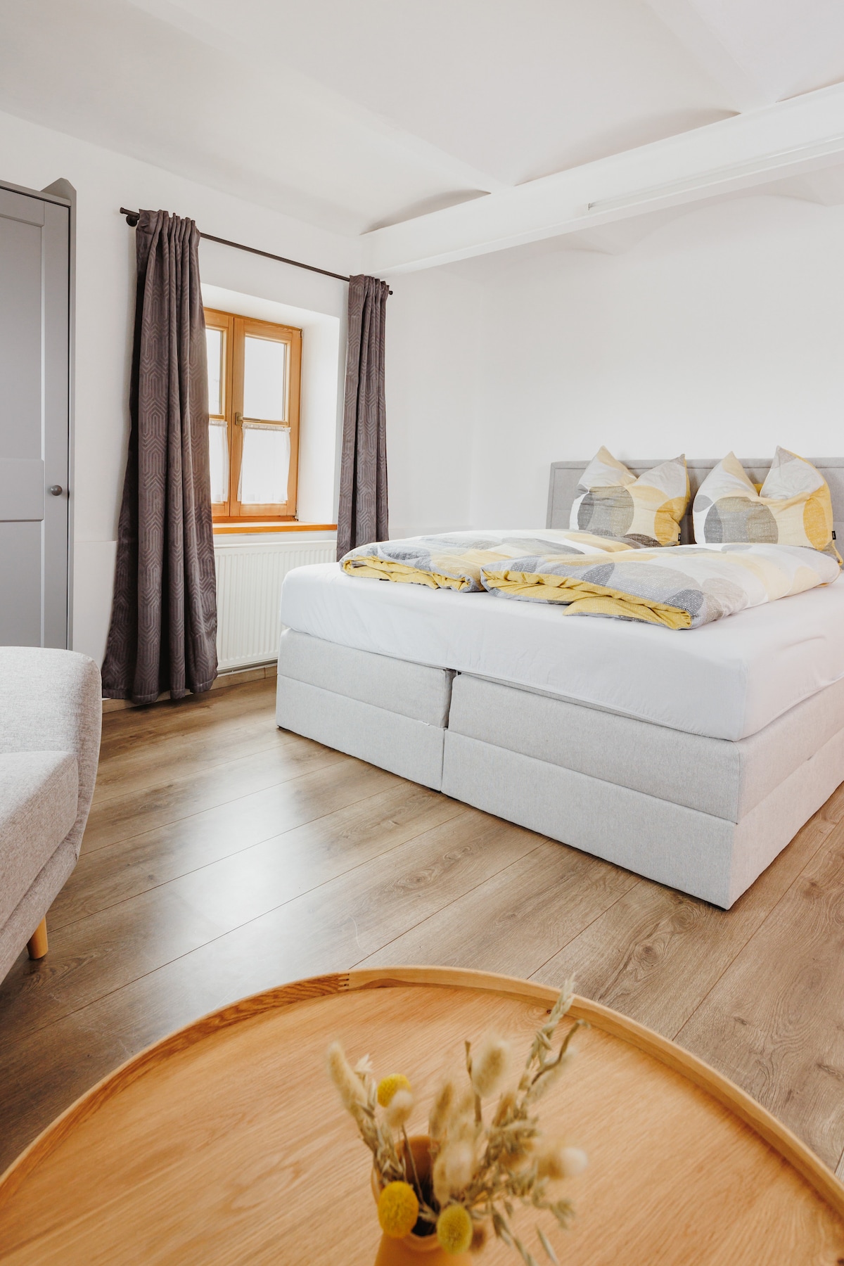 Vores meget lyse, idylliske og roligt beliggende lejlighed ligger i stueetagen i vores hus og har direkte adgang til din del af terrassen og haven. Den nye lejlighed er indrettet i moderne landlig stil og er meget veludstyret. Frasdorf ligger ved foden af Chiemgau-bjergene, beliggende i de bløde bakker i Voralpenland. Kun otte kilometer fra Chiemsee og Simssee. Centralt beliggende mellem München og Salzburg og langt væk fra stress og jag, og det hele året rundt.