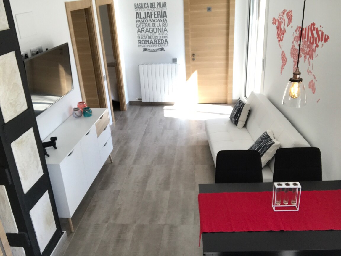 Helt renoveret lejlighed i en +200 år gammel fredet bygning midt i den gamle bydel Zaragoza (Spanien). Alt er tæt på lejligheden: offentlig transport, de vigtigste steder, der skal besøges ("El Pilar" ligger kun 3 minutter væk), restauranter, "El Tubo", parker, butikker... Du vil elske beliggenheden, atmosfæren, omgivelserne og menneskene. Perfekt til par, forretning og familier (børn er velkomne). Der tales spansk, engelsk, fransk og tysk.