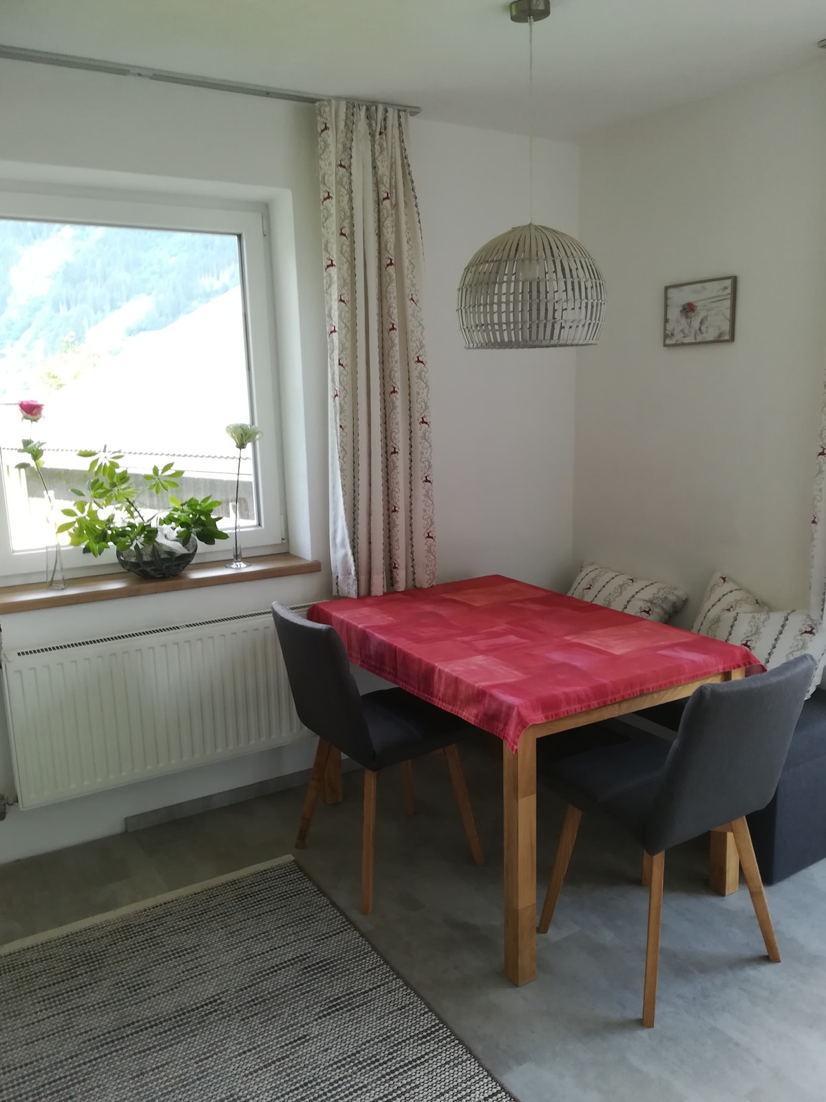 "Kimm Eicha" betyder "kom ind og hygge dig" på tyrolsk dialekt. En meget passende beskrivelse af den udsøgte lejlighed med dens storslåede udsigt. Ferielejligheden ligger på den solrige side af dalen. Det er den perfekte rede for turtelduer og ægte livsnydere. Lejligheden 'Kimm Eicha' kombinerer på charmerende vis ægte tyrolsk hygge med moderne landstedschic. Tag din yndlingsperson med, og nyd en fantastisk kvalitetstid sammen.