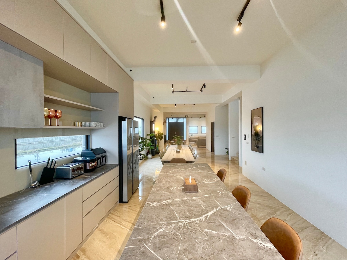 蒔光無境 是全新裝修完成設計師別墅 北歐風格設計 佔地超過400坪 室內面積約130坪 我們住在台北喜歡來宜蘭渡假放鬆 希望可以在宜蘭有一個 自己渡假款待朋友的私人居所 著手設計了這樣一個讓家人及朋友可以一起來共享歡樂的空間 五間四人套房 一間雙人套房 兩間雙人雅房 一間兒童遊戲空間 6間半衛浴設備 固定床位可睡26人 可以視情況再加床4人 最多可以入住30人左右 大客廳娛樂空間 安裝150吋投影超大布幕 專業KTV的點歌系統/無線藍芽麥克風/專業KTV喇叭及擴大機 歡唱不限時 每個房間皆備有網路電視及第四台 採用最新電動麻將設備 USB/紅外線消毒 專業飛鏢機台設備 跟朋友同樂時的精彩遊戲 民宿四周盡享田園風光 讓您感受都市外不同的戶外舒適空間 感受滿天的星空 把酒言歡歡唱 我們備有高檔烤肉設備 酌收設備費用 (設備費用$1200) 提供Costco美式大烤爐+生火噴槍+完整烤肉用具+戶外餐桌椅 溫馨提醒 平台人數上限16 超過16位房客入住 仍會有額外加人費用 每人$1200 週六或是連續假期 基本20位計費 官方Line: @s0925896456